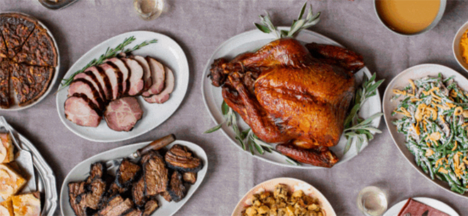 Fireside Tavern: Head to Sherborn a few miles west of the Hub for this restaurant’s Thanksgiving Feast To-Go, which boasts all-white-meat roasted, herbed and sliced turkey breast; roasted or mashed potatoes; stuffing with Brussels sprouts or green beans; cranberry sauce; gravy; cornbread or dinner rolls; and even a whole apple or pumpkin pie. Various packages serve as few as 4 or as many as 10–12 and can be ordered for pick-up on November 26.